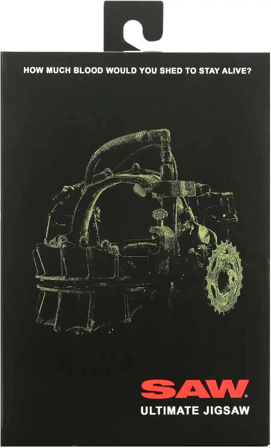 In the Saw movies, The Jigsaw Killer abducts the morally wayward in a twisted attempt to teach his victims the value of life. Once captured, his prisoners must face impossible choices in a horrific game of survival as he communicates with them through an eerie puppet. This 7” Saw action figure in a black robe gets the ultimate treatment, with a fully articulated body under a wired fabric robe. Accessories include: interchangeable heads and hands, pig-mask head, puzzle head-trap, tape recorder, extended blade, and Billy the Puppet with Trike. Collector-friendly window box packaging with opening front flap.