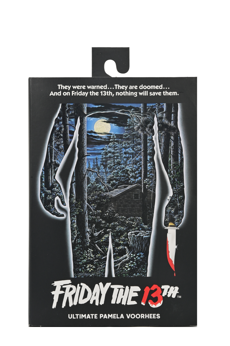 Mother is returning! NECA is thrilled to bring back a fan-favorite figure for a one-time-only, limited release: Ultimate Pamela Voorhees! The mother of Jason and the killer from the original 1980 Friday the 13th film is back to avenge the death of her son who drowned at Camp Crystal Lake. An absolute must-have for horror movie fans, this 7-inch scale action figure includes interchangeable heads and hands, knife, axe, machete, broken oar, and bow and arrow. Comes in collector-friendly window box packaging with opening front flap.