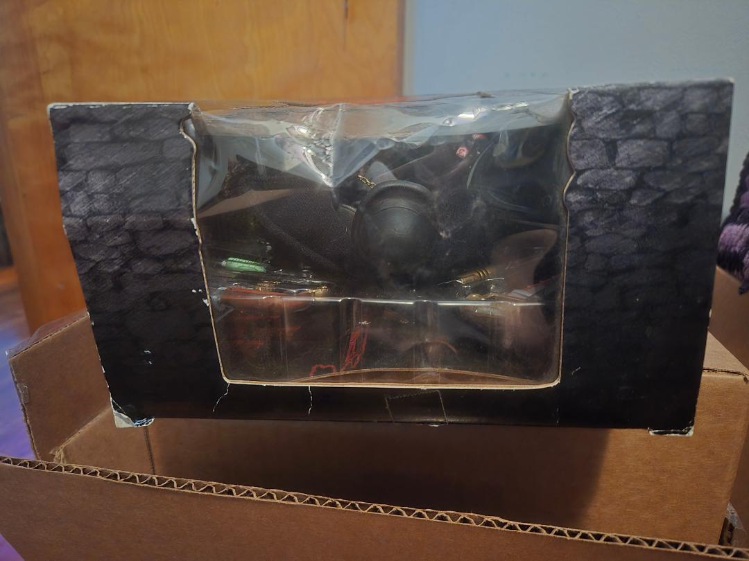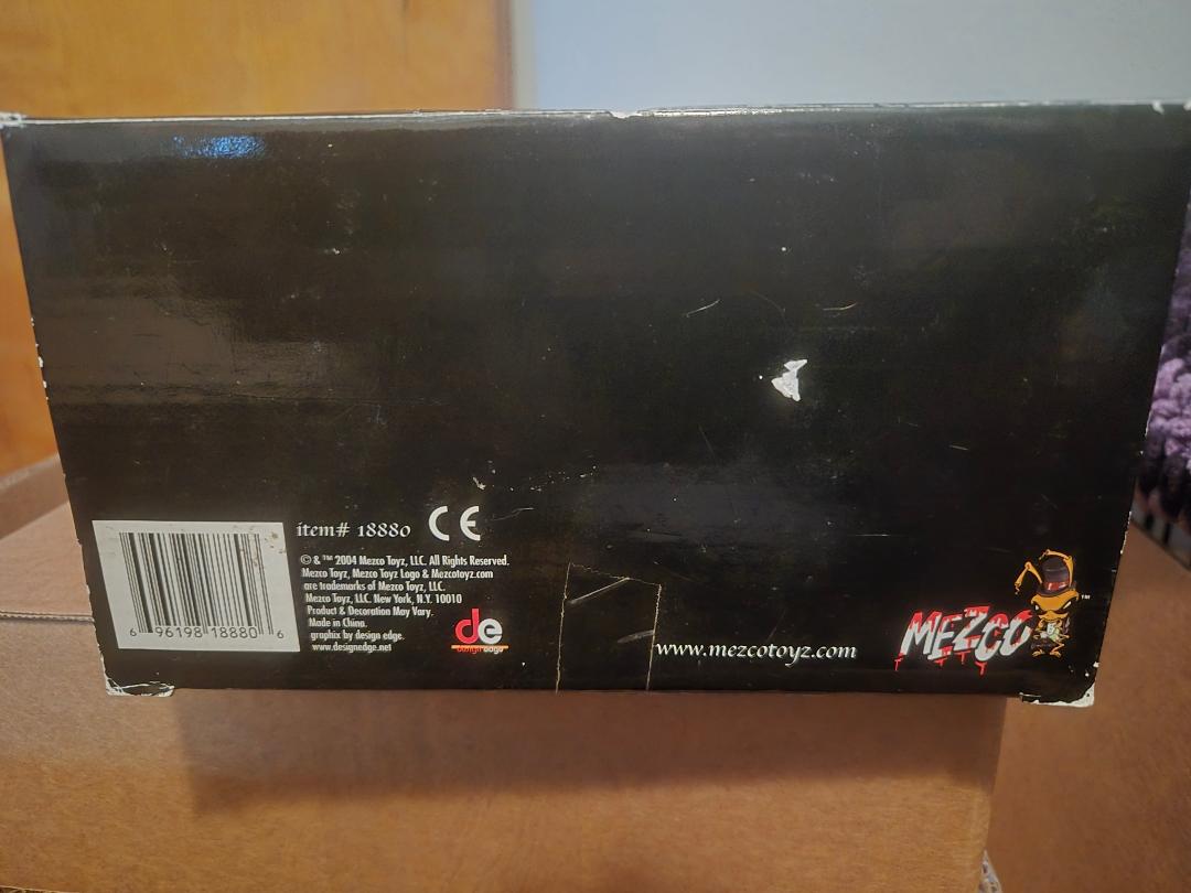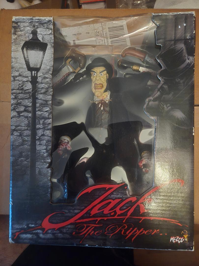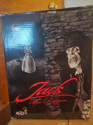 Few names in history are as recognizable as Jack The Ripper. This faceless villain comes alive with Mezco Toyz 9-inch Jack the Ripper roto-cast figure. Jack is fully articulated and comes complete with appropriate accessories including five knives, satchel, hat, and cloth cloak. Original packaging, broken seal, box is not mint.
