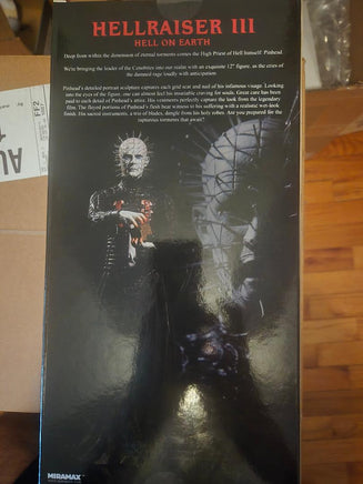 Deep from within the dimension of eternal torments comes the High Priest of Hell himself: Pinhead. We're bringing the leader of the Cenobites into our realm with an exquisite 12" figure, as the cries of the damned rage loudly with anticipation. Pinhead's detailed portrait sculpture captures each grid scar and nail of his infamous visage. Looking into the eyes of the figure, one can almost feel his insatiable craving for souls. Great care has been paid to each detail of Pinhead's attire. His vestments perfectly capture the look from the legendary film. The flayed portions of Pinhead's flesh bear witness to his suffering with a realistic wet-look finish. His sacred instruments, a trio of blades, dangle from his holy robes. The figure comes complete with two sets of hands: one set to hold the included Lament Configuration for summoning the Cenobites, and a second set to wield his instruments of transformation. Pinhead features 7 points of articulation and is packaged in a specially die-cut collector friendly window box that highlights his grotesque beauty. Are you prepared for the rapturous torments that await?