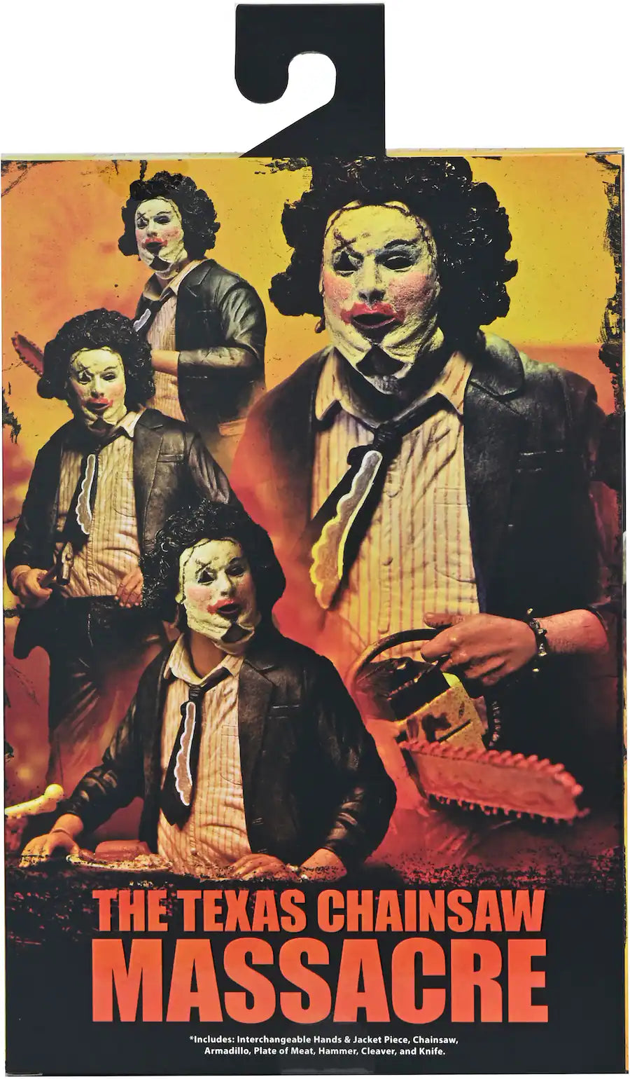 Celebrate the 50th anniversary of The Texas Chainsaw Massacre! The classic 1974 slasher film by Tobe Hooper changed horror cinema forever. Own a piece of its history with NECA’s Ultimate Leatherface 7-inch scale action figure! Dressed in his infamous “Pretty Woman” mask and dress suit, Leatherface features an articulated tie and alternate jacket piece for a windswept look as he runs into the Texas fields chasing his victims. Accessories include interchangeable hands, chainsaw, armadillo, knife, bracelet, small hammer, cleaver, and plate of meat. Comes in collector-friendly window box packaging with opening front flap.