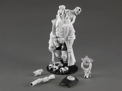 Celebrating thirty years of our beloved Hellboy, this Dark Horse Direct exclusive Hellboy 30th Anniversary Deluxe Vinyl Figure stands at 12.5” tall and comes complete with accessories such as: the famed corpse, Tam O'Clannie, ready to be laid to rest in a proper grave; a removable B.P.R.D. logo shirt; swappable weapon hands and gun holster; and an interchangeable Anung Un Rama alternate head with flaming crown.