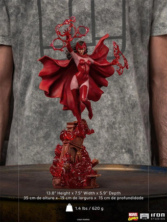 She can control Chaos Magic, which allows her to manipulate probability and even distort and change reality itself. On a base where she floats with her power, on an old column chime clock, with the remains of rubble from a heroes' mansion, but also sending a subliminal message as if she were bending time and space, Wanda Maximoff, also known as Scarlet Witch, manipulates bundles of supernatural red energy with her hands, and her imposing presence intimidates any opponent. As if she came straight out of the pages of the Marvel Comics, joining forces with her twin brother sprinter Quicksilver previously revealed, Iron Studios brings her statue "Scarlet Witch - X-Men - BDS Art Scale 1:10 - Iron Studios", with Marvel's most powerful mystical heroine.
