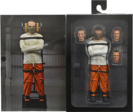 Add the iconic Hannibal Lecter to your horror collection! Portrayed by Oscar winner Anthony Hopkins, the brilliant and psychotic doctor from The Silence of the Lambs stands in his orange prison uniform and straight jacket. This chilling 7" scale figure by NECA is articulated for posing and comes with interchangeable heads, his trademark mask, and a dolly accessory for transporting him. Ages 18+.