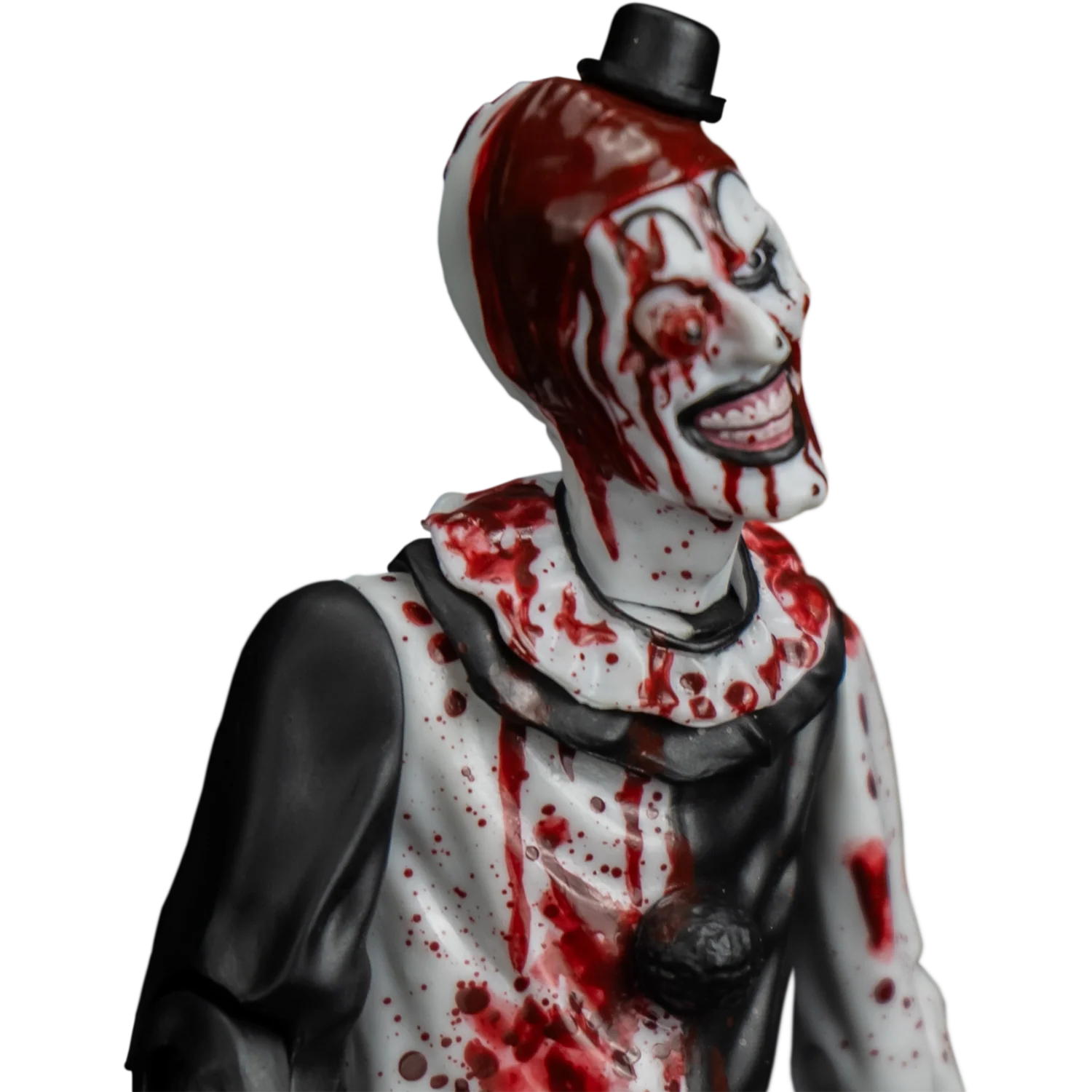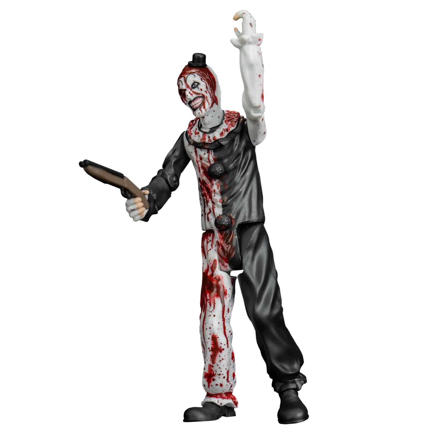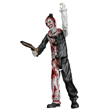 Trick or Treat Studios is proud to present the officially licensed, Terrifier 2 - Eye Poppin' Art The Clown - 5" Action Figure! Eye Poppin' Art The Clown features gruesome eye-ball poppin action! Just push the brain matter on the back of his head and see his peeper pop! Figure also comes complete with mace, cleaver, medical hammer and shotgun accessories.