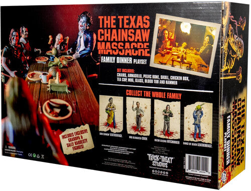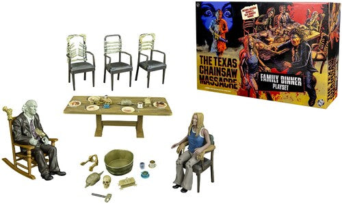 Trick or Treat Studios is proud to present the official The Texas Chainsaw Massacre (1974) Dinner Scene Playset! Re-enact the traumatizing dinner scene with the Dinner Scene Playset, complete with Grampa and Sally figures!